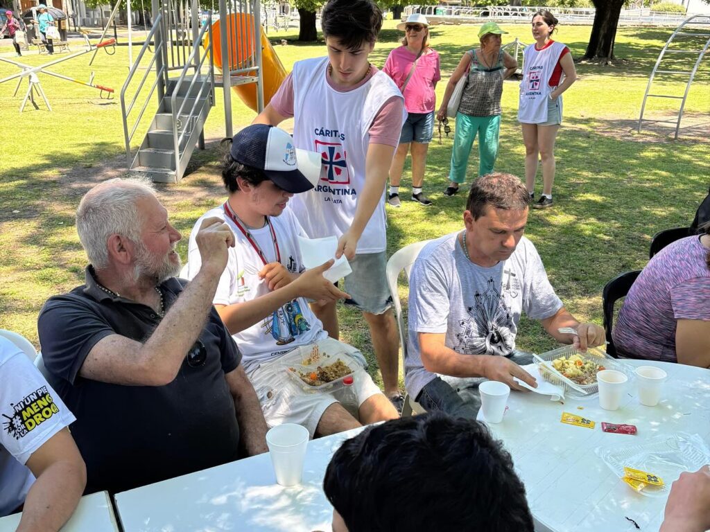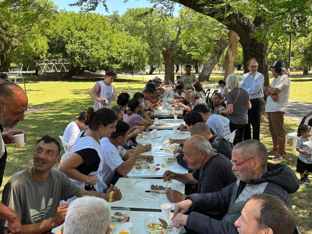 En el marco de la IX Jornada Mundial de los Pobres “Tu, Señor, eres mi esperanza”, el sábado 15 de noviembre en Plaza Belgrano, numerosas personas compartieron un día lleno de fraternidad, solidaridad y empatía, que contó con un almuerzo incluido para personas en situación de calle, quienes recibieron una vianda, y también hubo puestos de salud, duchas, corte de pelo gratuito y kits de higiene.