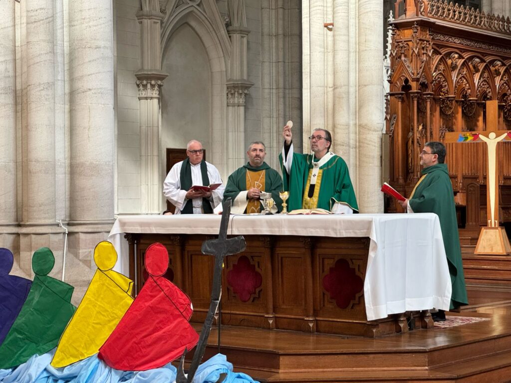 La Misa fue presidida por nuestro Arzobispo Gustavo Carrara, y concelebrada por el Obispo Auxiliar y delegado episcopal del Secretariado Arquidiocesano de Biblia y Catequesis, Mons. Federico Wechsung; el director general de ese Secretariado y director de la Junta Catequística Arquidiocesana, Pbro. Gerardo Gallo, y el párroco del templo, Pbro. Hernán Remundini.